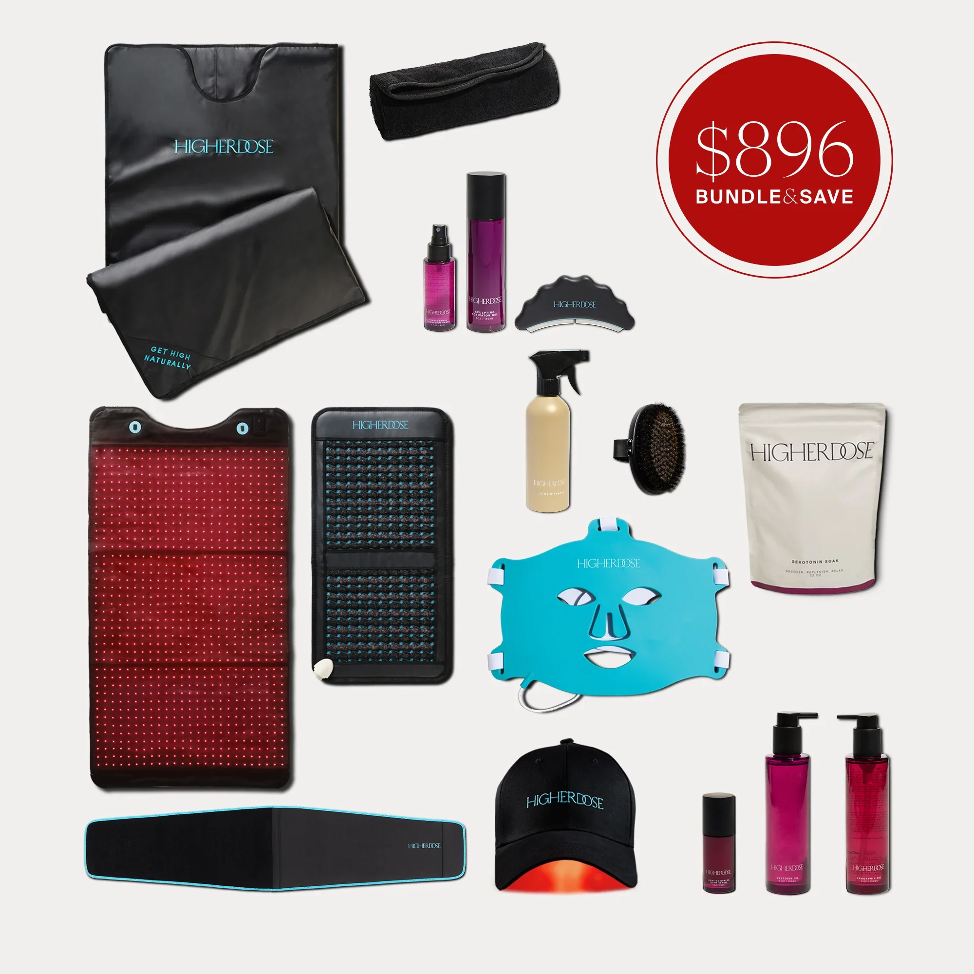 An all-in-one luxury wellness bundle combining infrared heat, red light, PEMF, and microcurrent tools to support detox, recovery, skin health, and full-body energy.